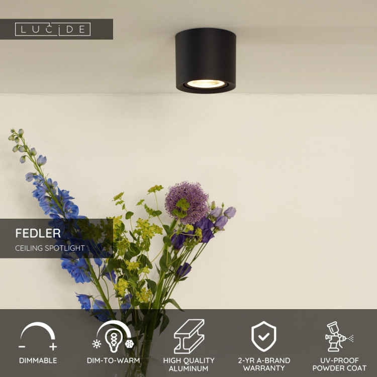 Stropní bodové svítidlo Fedler je kompaktní, geometricky dokonalé, má moderní vzhled a průměr sotva 12 centimetrů. Intenzitu přiložené LED žárovky můžete ovládat sami po připojení světla ke stmívači (není součástí dodávky). Společně s intenzitou světla můžete měnit i barevnou teplotu (3000K-2200K). Fedler je vyroben z vysoce kvalitního hliníku. Potěší vás stylový a lehký design. To také velmi usnadňuje připevnění světla ke stropu. Chystáte se umístit více světla v řadě nebo si vytváříte svůj vlastní vzor světla?