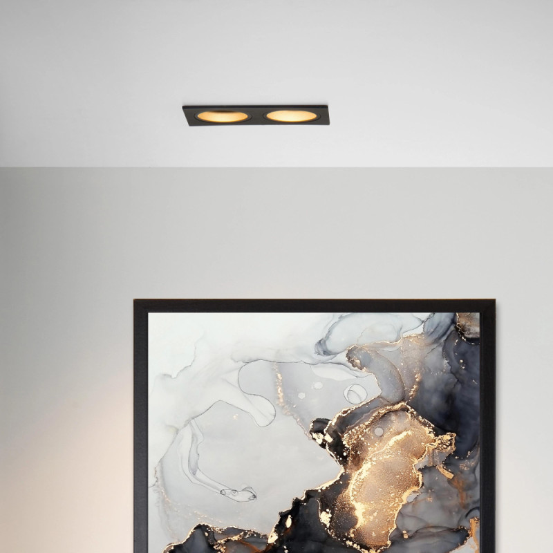 Progresivní obdélníkové podhledové svítidlo. To je Embed. Spot je vyroben z vysoce kvalitního hliníku a dokončen matně černým lakem. V kombinaci s bílým interiérem přidáte tímto podhledovým svítidlem extra šarm vašemu prostoru. Máte spoustu možností. Spot můžete kompletně otáčet a naklápět. Je to otázka zvýraznění přesně těch detailů, které považujete za důležité. Toto moderní podhledové svítidlo s paticí GU10 udává tón designu a možnostem.