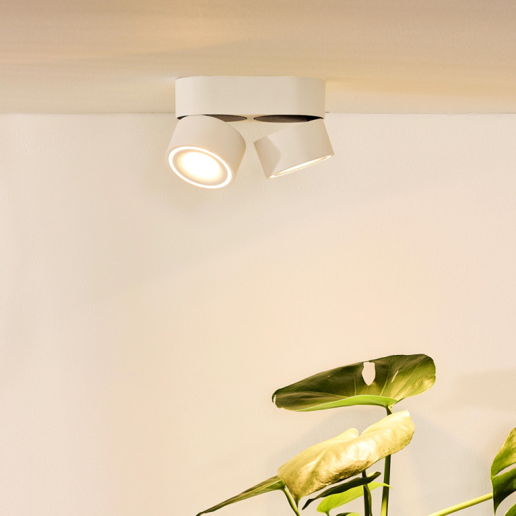 Kompaktní dvojité stropní bodové svítidlo Yumiko s integrovanými LED zdroji a teplým bílým světlem (2700K). Naklápěcí reflektory pro přesné směrování světla. Šířka jen 16 cm, vyrobeno z kvalitního hliníku. Připojitelné ke stmívači. 2x10W, stmívatelné, žárovky součástí balení, 3 roky záruka.