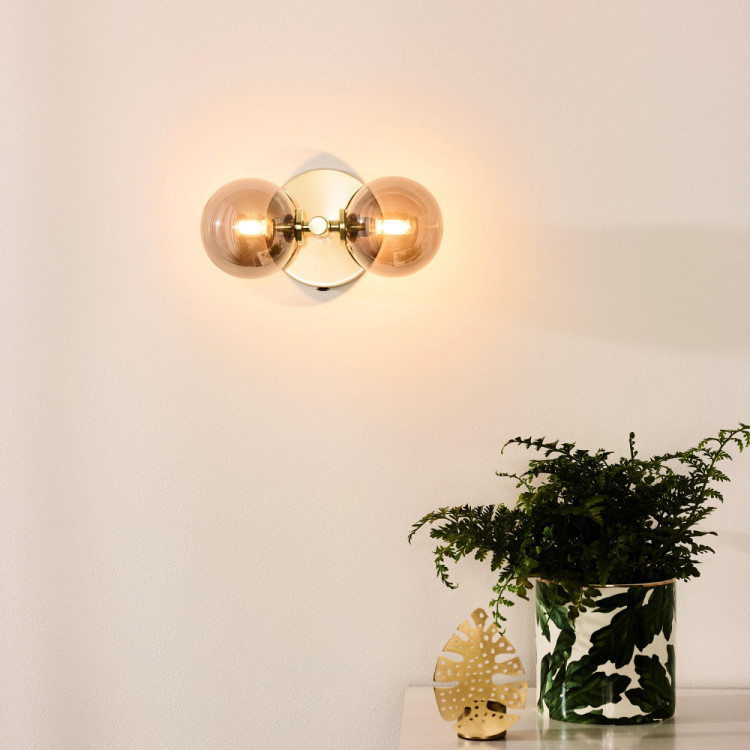 Nástěnná lampa Tycho s hravým designem dvou skleněných koulí na ocelové základně. Matné sklo rozptyluje světlo difuzně a vytváří příjemnou atmosféru. Kompaktní provedení okamžitě upoutá pozornost. Kompatibilní s LED zdroji, možnost připojení ke stmívači. Spotřeba: 2x28W. Rozměry: 12x15x24,5 cm. 2 roky záruka.