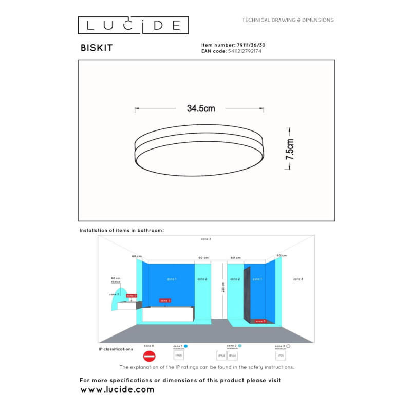 Vstupte do koupelny a nechte se překvapit svítidlem Biskit. Toto stropní svítidlo s průměrem 34,5 centimetru má vestavěnou LED žárovku, která vyzařuje teplé bílé světlo. Promění vaši koupelnu v oázu klidu a pohody. Ale Biskit je víc než jen krásné světlo. Díky vestavěnému pohybovému senzoru vás přivítá světlem, jakmile vstoupíte do koupelny. A automaticky se vypne, když odejdete. To dělá z Biskitu mimořádně energeticky úsporné řešení. Vyrobeno z vysoce kvalitního akrylu a navrženo s ohledem na funkčnost i styl, Biskit je ideální svítidlo pro každou moderní koupelnu.