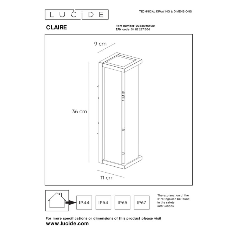 Lucide CLAIRE MINI - nástěnné svítidlo venkovní - IP54 - Černá 27885/02/30