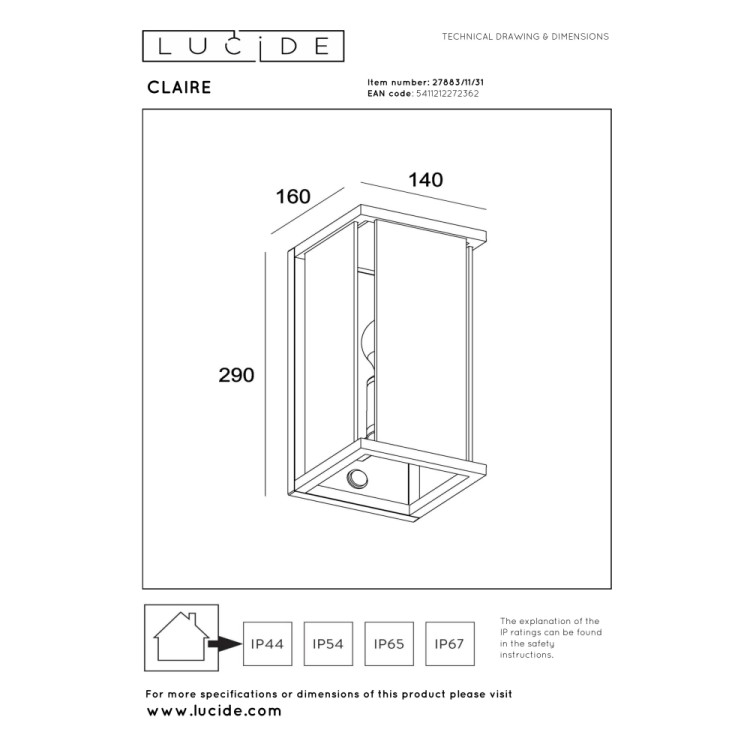 Toto okouzlující nástěnné světlo se venku cítí nejvíce jako doma. Venkovní osvětlení kombinuje kvalitní hliník s pravým sklem. Výsledek vytváří velkou dávku šarmu a výkonu. Claire, jak se toto nástěnné osvětlení nazývá, je ideální jako náladové osvětlení na vaší terase nebo pro zdůraznění vnějších stěn vašeho domu. Toto nástěnné světlo také vytváří vřelé přivítání u vašich vstupních dveří. Žárovka v ceně není, ale klidně si vyberte ŽÁROVKU LED. Ten dojem je pak ještě více zarážející.