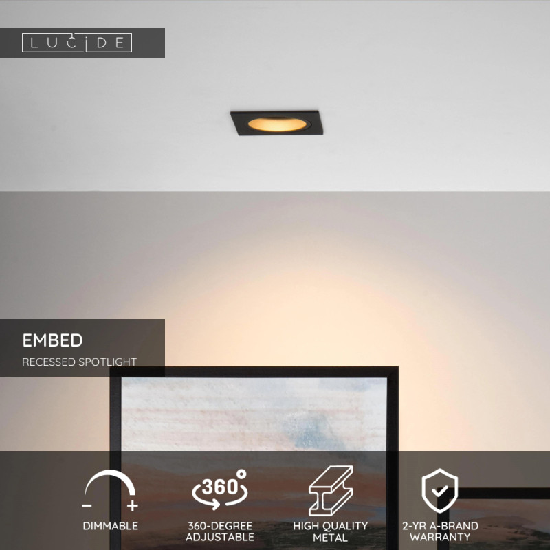 Progresivní čtvercové zapuštěné místo. To je Embed. Spot je vyroben z vysoce kvalitního hliníku a povrchově upraven matným černým lakem. V kombinaci s bílým interiérem dodáte svému interiéru extra kouzlo s tímto zapuštěným bodem. Máte spoustu možností. Místo můžete zcela otočit a naklonit. Jde o to zvýraznit přesně ty detaily, které považujete za důležité. Toto moderní zapuštěné bodové svítidlo s kováním GU10 udává tón designu a možnostem.