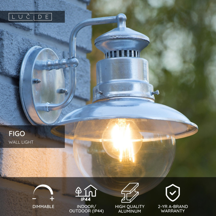 Venkovní svítidlo LUCIDE FIGO 11811/01/06 je vyrobeno z velmi kvalitní oceli a skla. Povrchová úprava je v pozinkové barvě. Svítidlo má krytí IP44, tudíž je vhodné pro venkovní použití.