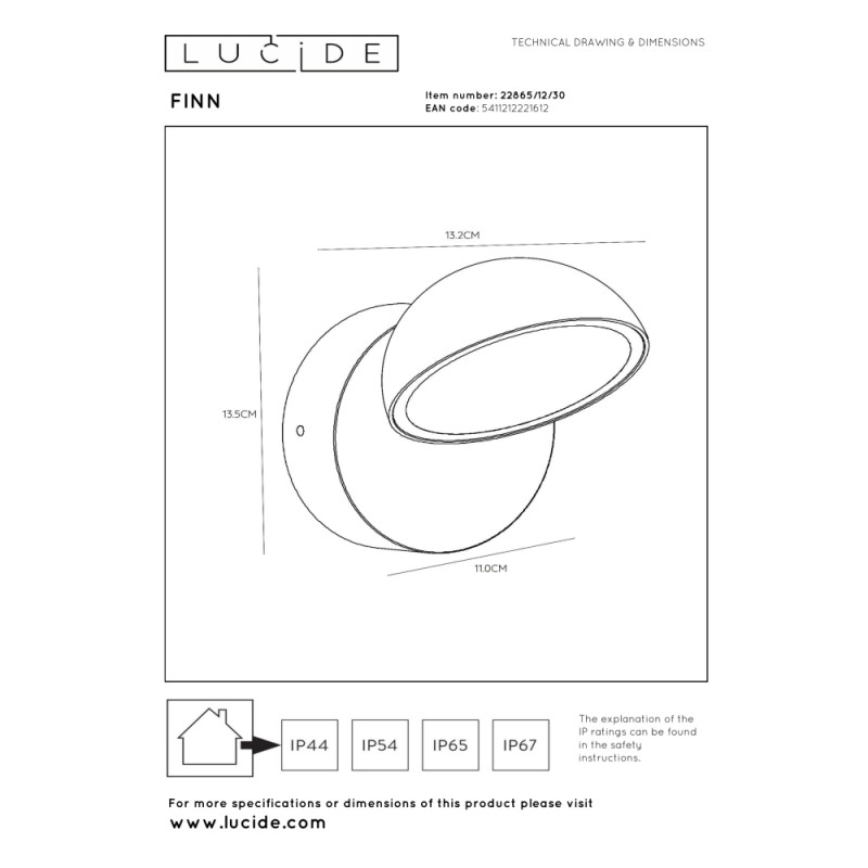 Lucide FINN - Nástěnné svítidlo Vnitřní/Venkovní - LED - IP54 - Senzor Den/Noc - Černá