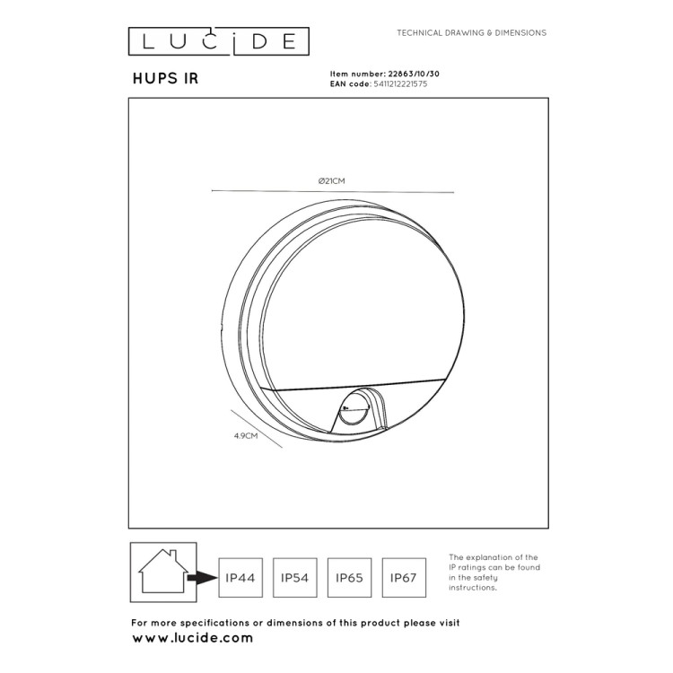 Lucide HUPS IR - Nástěnné světlo Vnitřní/Venkovní - LED - 1x10W 3000K - IP54 - Senzor pohybu & Den/Noc - Černá