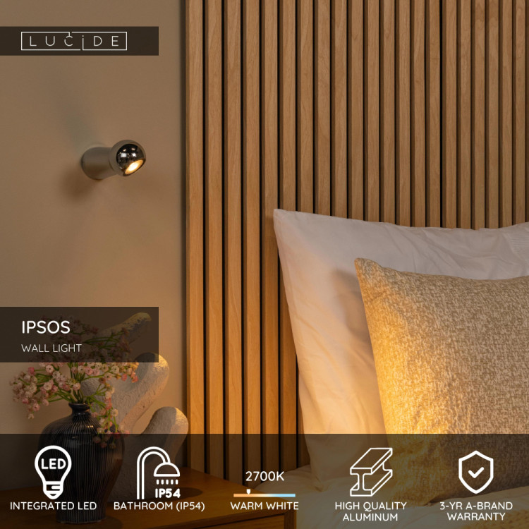 Lucide IPSOS - nástěnné koupelnové svítidlo - LED - 1x6W 2700K - IP54 - Chrom