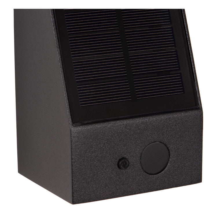 Nástěnné venkovní svítidlo Irwin - solární LED svítidlo se šikmým designem a integrovanými solárními články. Rozměry 8,1 x 8 x 18 cm, teplé bílé světlo 2850K, krytí IP54. Praktické a elegantní osvětlení s automatickým senzorem.
