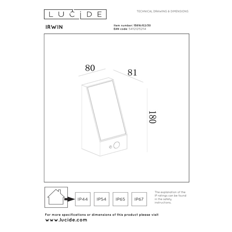 Nástěnné svítidlo Irwin představuje perfektní spojení současného designu a chytrých technologií. Jeho praktické vlastnosti a elegantní vzhled z něj dělají ideální volbu pro váš exteriér.