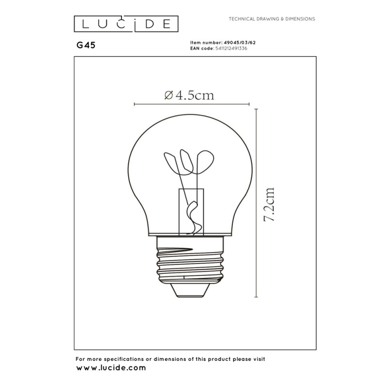 Lucide LED žárovka 4.5cm E27/3W 2200K - stmívatelná - Jantarová211Kč