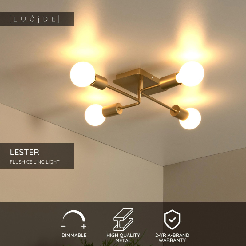 Lester září do všech směrů. Doslova. Toto přisazené stropní svítidlo z vysoce kvalitního kovu má čtyři žárovky, jednu pro každý světový směr. Čistá montážní deska a elegantní, minimalistický design proměňují Lester v moderní doplněk vaší kuchyně, obývacího pokoje nebo ložnice. Žárovky s vláknem vyniknou v tomto kreativním designu nejlépe a vytvoří úžasný vizuální efekt. Přisazené stropní svítidlo Lester můžete snadno připojit ke stmívači a vytvořit tak dokonalou náladu pouhým stiskem tlačítka. To je 360° zábavy a světla.