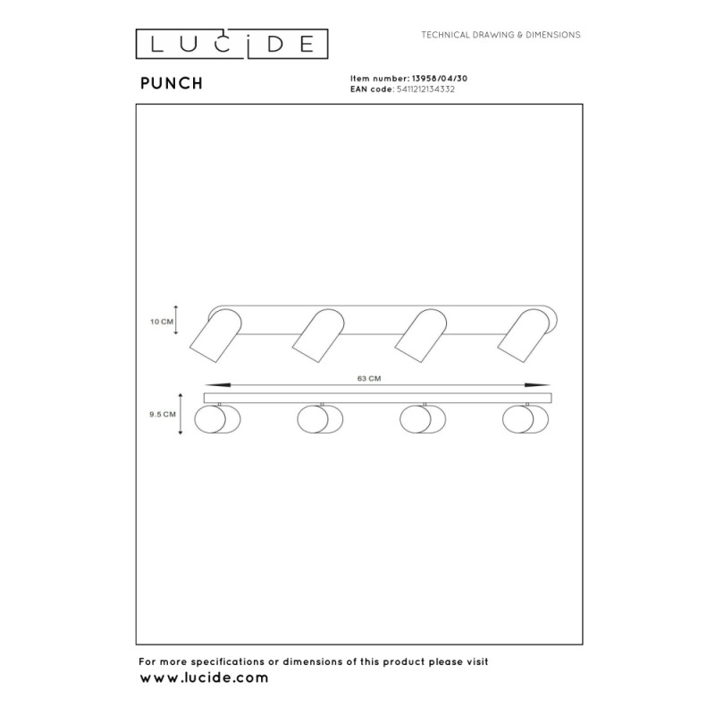Nadčasová elegance a efektivita v jednom. Punch dodá vašemu prostoru extra šmrnc se čtyřmi nezávisle ovladatelnými světelnými zdroji. Toto stropní bodové svítidlo je skvělým doplňkem vaší jídelny nebo kuchyně. Každý reflektor nastavíte samostatně do požadovaného směru a vaše světlo svítí přesně tam, kde chcete. Sílu světelného paprsku můžete také bez námahy přizpůsobit svým přáním připojením Punch k externímu stmívači. Tento spot má celkovou délku 63 centimetrů a jednotlivé reflektory jsou vysoké něco málo přes 10 centimetrů.