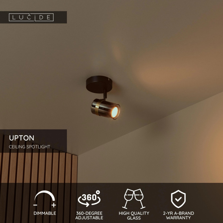 Každý, kdo potká Upton, je okamžitě okouzlen. Toto půvabné válcové nástěnné svítidlo má vše, co potřebujete pro vylepšení vašeho interiéru. Tato kompaktní nástěnná lampa se otáčí a naklání a má vypínač přímo na základně, což vám umožňuje nasměrovat světlo přesně tam a tehdy, kde a kdy ho potřebujete. Stínidlo z vysoce kvalitního kouřového skla jemně rozptyluje světlo a vytváří útulnou atmosféru. Použijte ho ke zvýraznění výjimečného kousku ve vašem domově nebo k vytvoření příjemného nálادového osvětlení v čtecím koutku. S Upton máte volbu ve svých rukou.