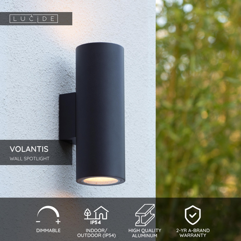 Lucide VOLANTIS venkovní nástěnné bodové svítidlo 2xE27 IP54 černá