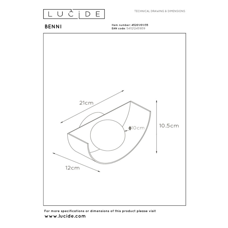 Dekorativní nástěnná lampa Benni s kruhovým tělem z kvalitní oceli. Kompaktní rozměry 21x12x10,5 cm ideální do chodby, u postele nebo k posezení. Stmívatelná pomocí externího stmívače. Spotřeba: 1x28W / 230V. Kompatibilní s LED zdrojem. 2 roky záruka.