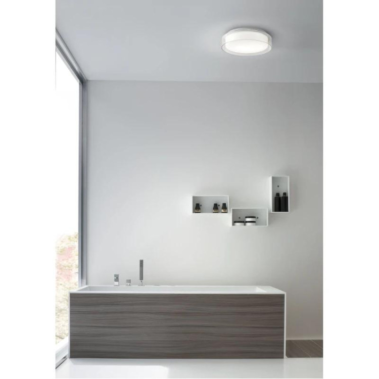 Malé, elegantní svítidlo na strop se hodí do ložnice, obývacího pokoje i do koupelny na krytou plochu. Chrómová kovová konstrukce s dvěma skleněnými difuzory vypadá moderně a nenápadně. Teplá bílá barva světla (3000K) vytváří příjemnou, relaxační atmosféru, která vás obklopí bez agresivity ostrého osvětlení.